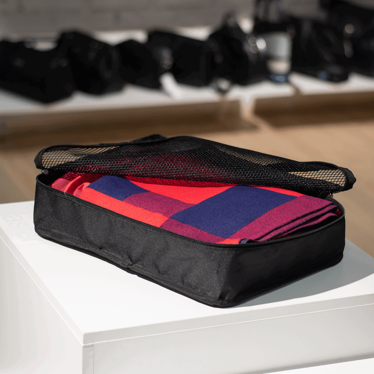 Вместительный органайзер для путешествий из прочной ткани 300Д W1000 риб-стоп 5м. Одна из набора упаковочных сумок разных размеров в дорогу. Помогает организовать вещи в чемодане, сумке или рюкзаке. Этот чудо-набор органайзеров для багажа избавит вас от шуршащих пакетов и ненужной упаковки. Рекомендуем приобрести каждому члену семьи органайзеры разного цвета для упаковки своей одежды в одном чемодане. Размер подходит для использования в ручной клади. Этот органайзер отличный подарок любителям путешествовать.